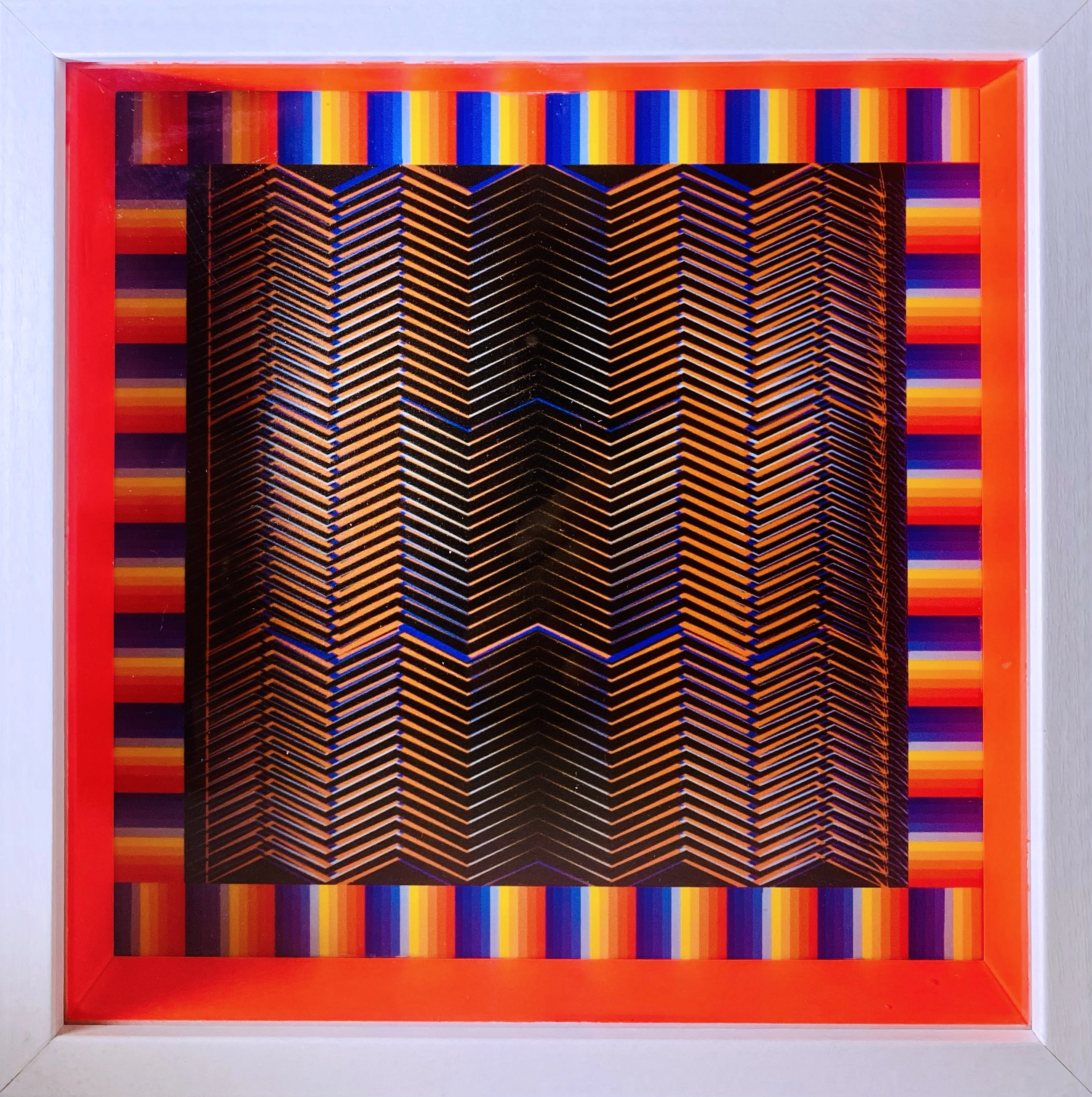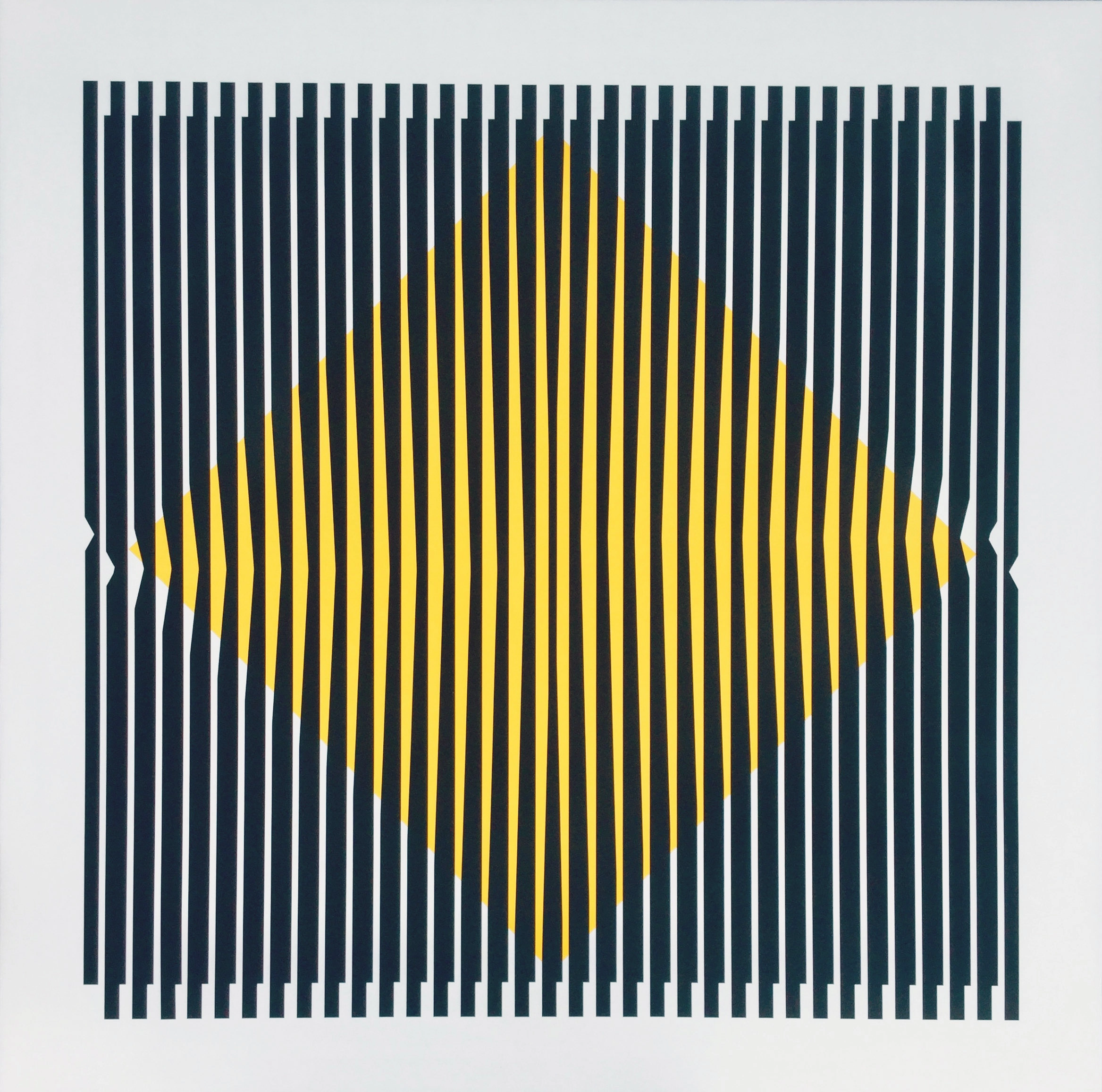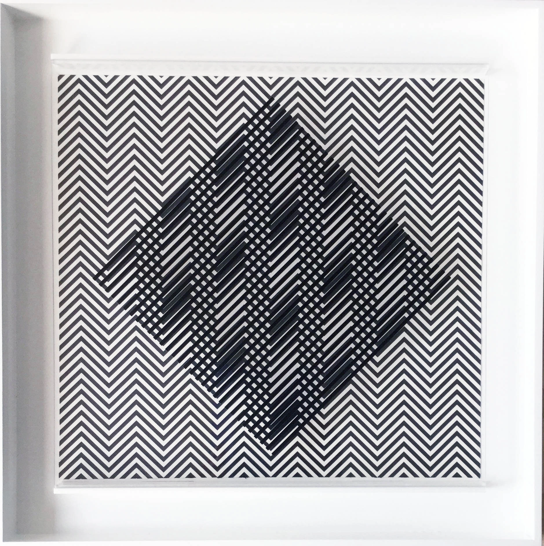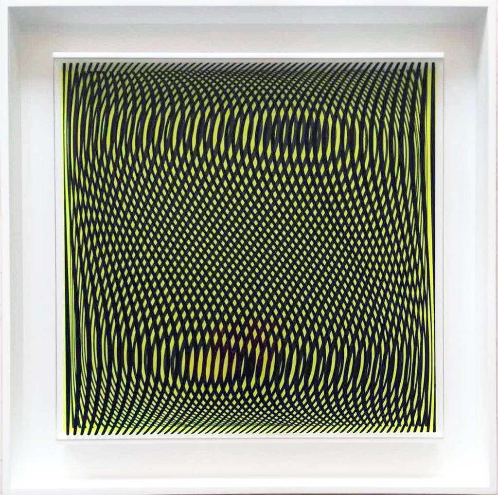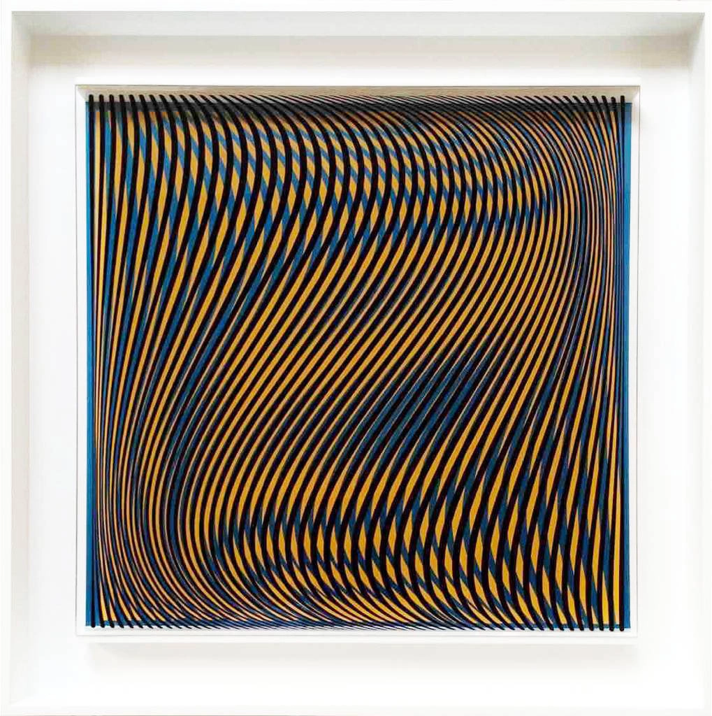 Each piece invites the viewer to experience the subtle tension between order and visual vibration.